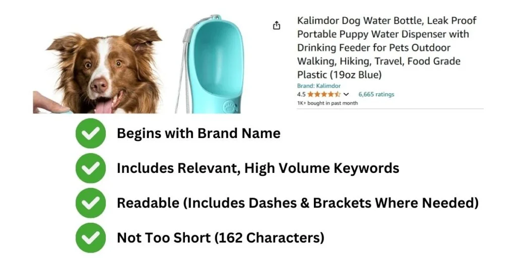 • Keep it tight. As of 2026, Amazon caps most titles at 150 characters. Some categories want even less. Don’t waste your space. Make sure you’re using your most important keywords.